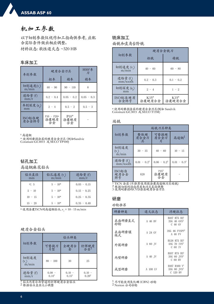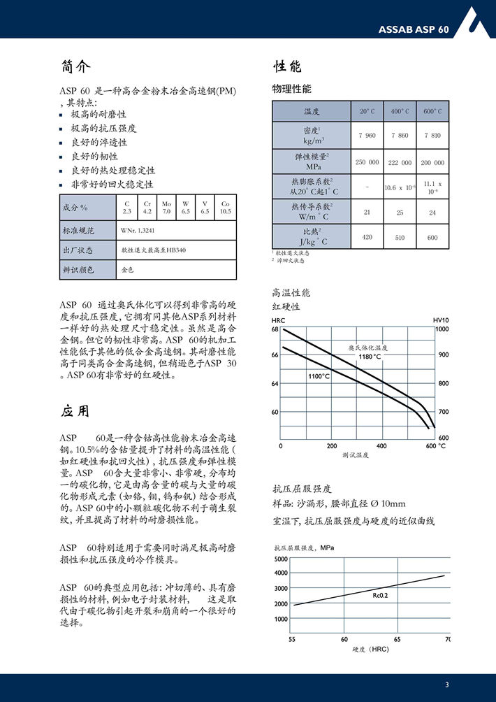 瑞典***ASP60粉末高速鋼:用于刀具和冷加工的粉末高速鋼,極高的耐磨性和高溫時硬度。...