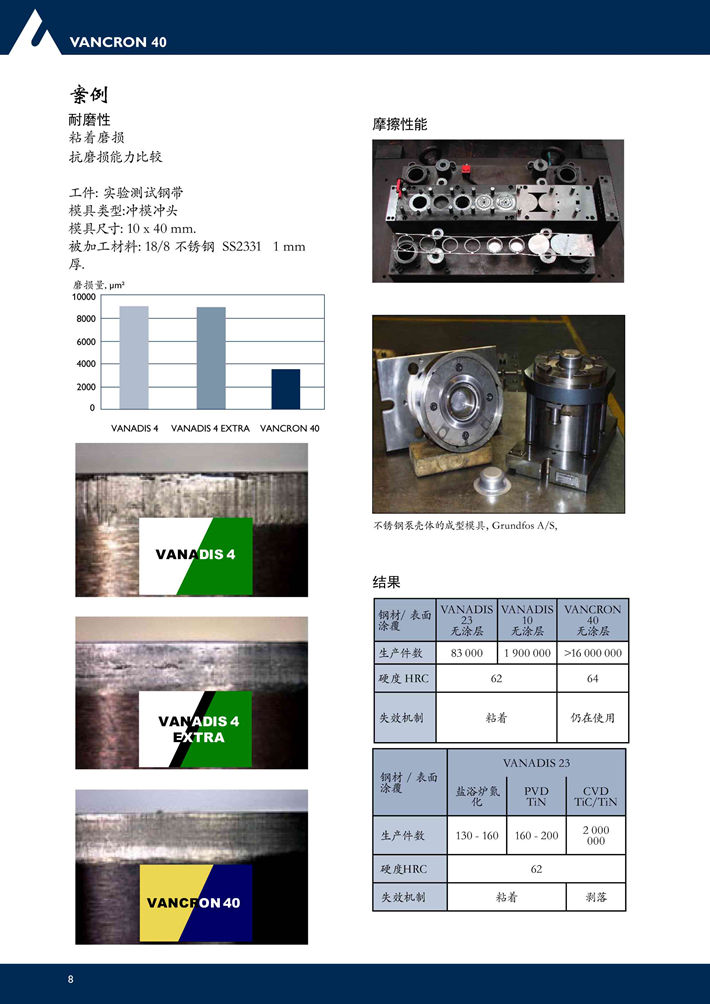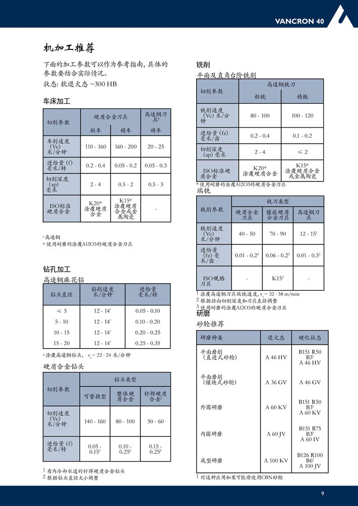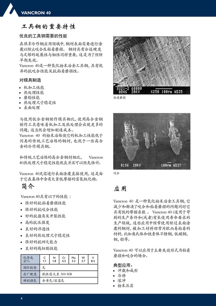 瑞典***V40(VANCRON 40)粉末高速鋼:富氮的粉末冶金模具鋼,具有非常好的抗粘著和抗粘著磨損性能,通常不必做涂覆。...