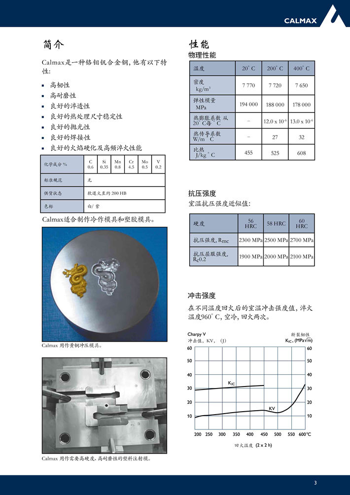 瑞典***635(CALMAX)模具鋼:具有高韌性,優(yōu)良的耐磨性和優(yōu)良的拋光性能的模具鋼...