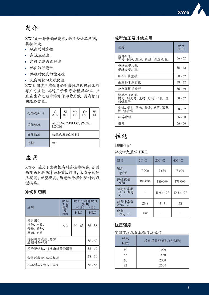 瑞典***XW-5冷作模具鋼:含12%Cr,高碳,具有出色的耐磨粒磨損性能的模具鋼。...