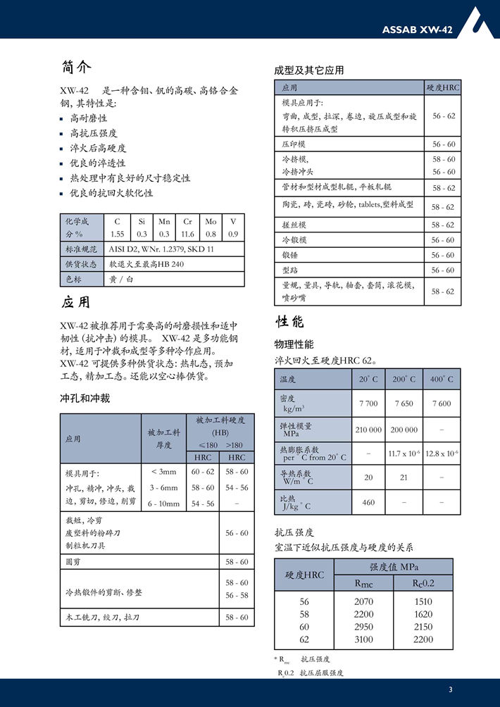 瑞典***XW-42冷作模具鋼:含12%Cr的高耐磨和韌性的模具鋼...