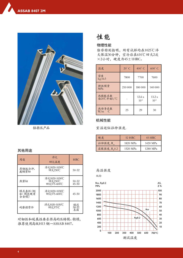 瑞典***8402熱作模具鋼:具有全面優(yōu)良的延展性,韌性,耐磨性,淬硬性和機加工性能。 8402是通過特殊的工藝制造的,在傳統(tǒng)制造AISI H13標準中,其一致性和均勻性被證明是*好的...