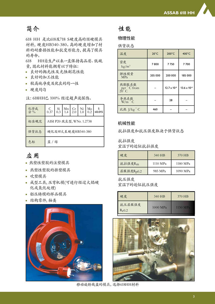 瑞典***618HH塑膠模具鋼:預(yù)硬塑膠模具鋼,具有優(yōu)良的拋光性能和機加工性能。...
