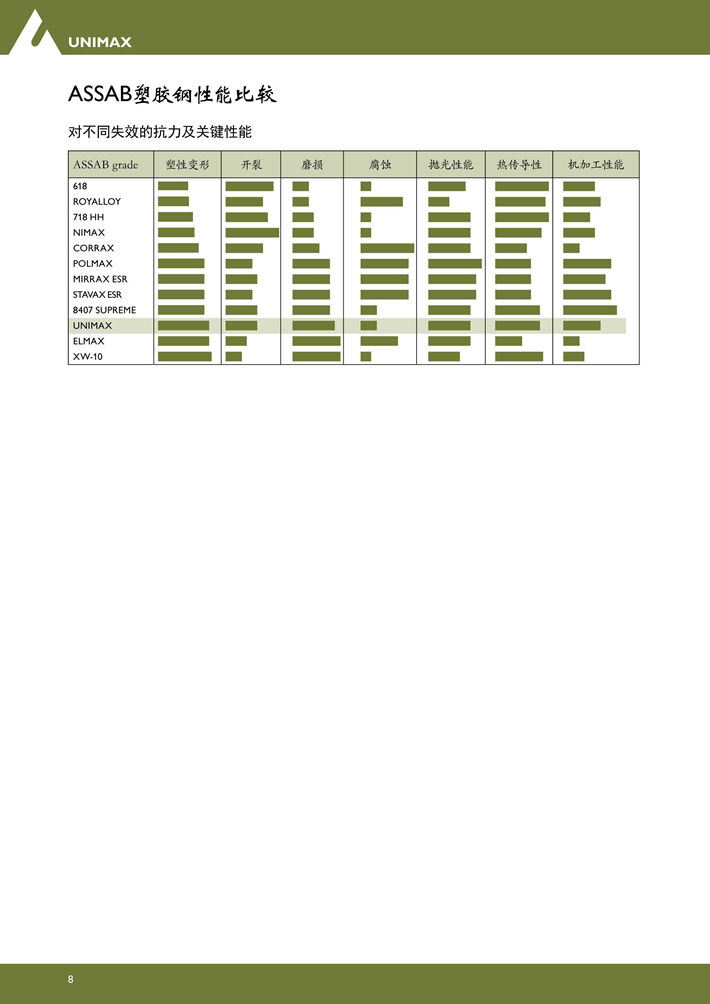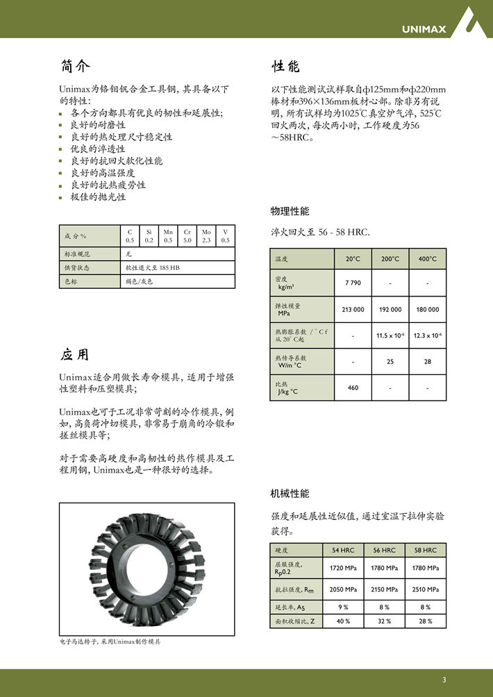 瑞典***UNIMAX塑膠模具鋼:高硬度,非常優(yōu)良的韌性,ESR(電渣重溶)獲得優(yōu)良的拋光性能。適合做涂層或氮化...